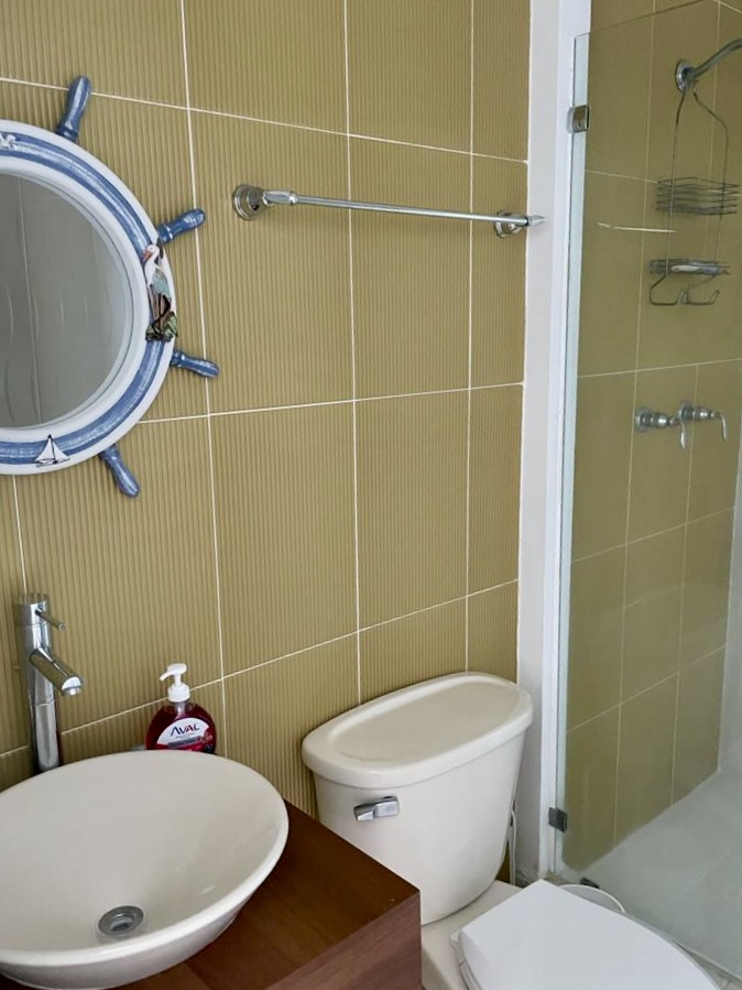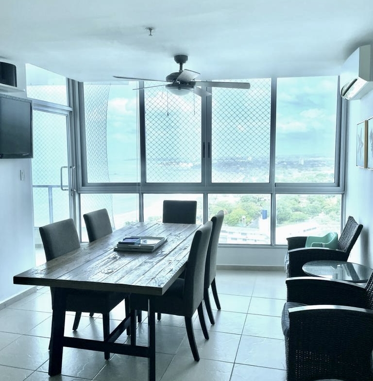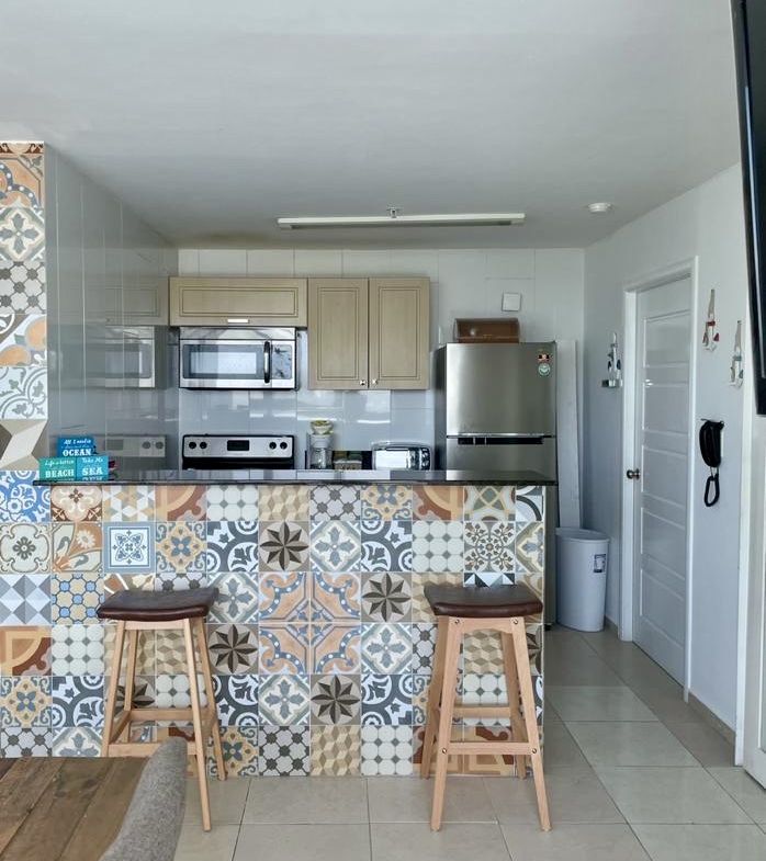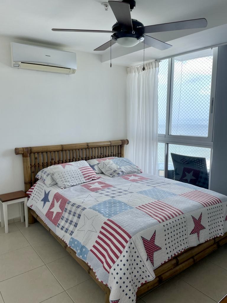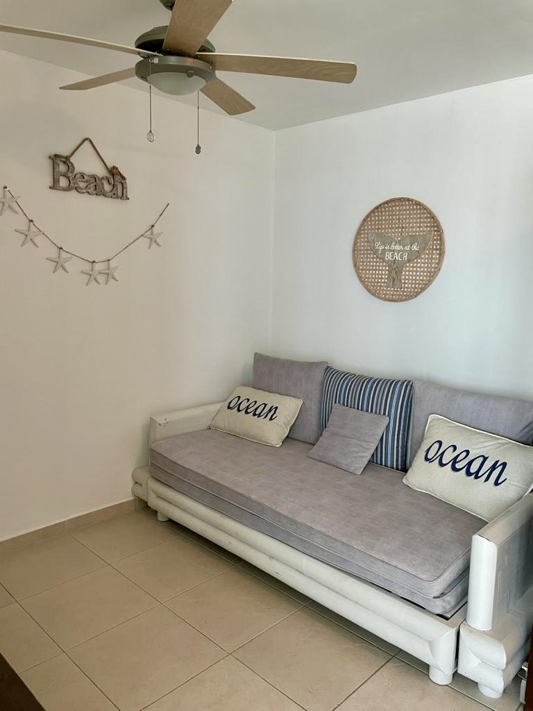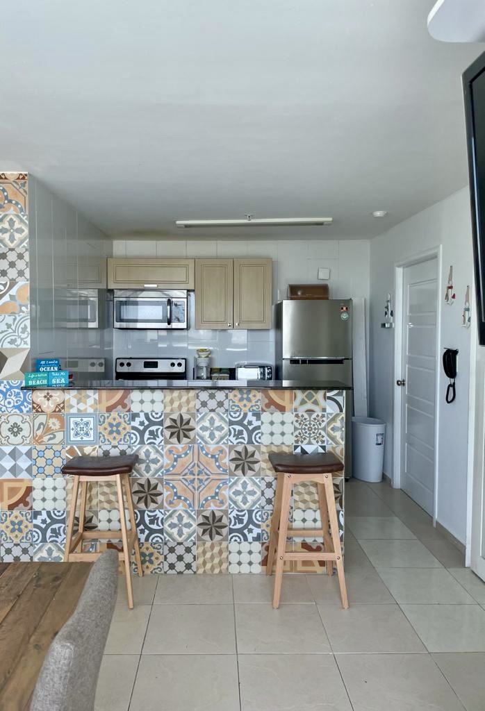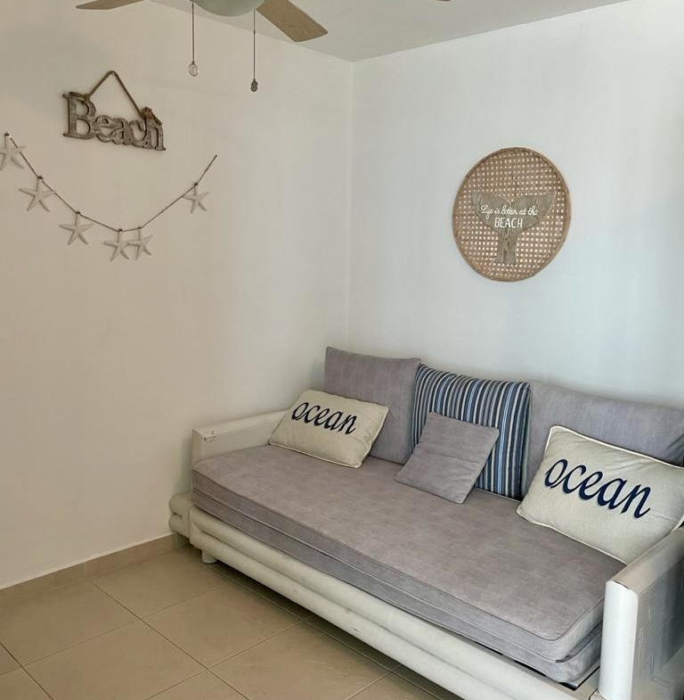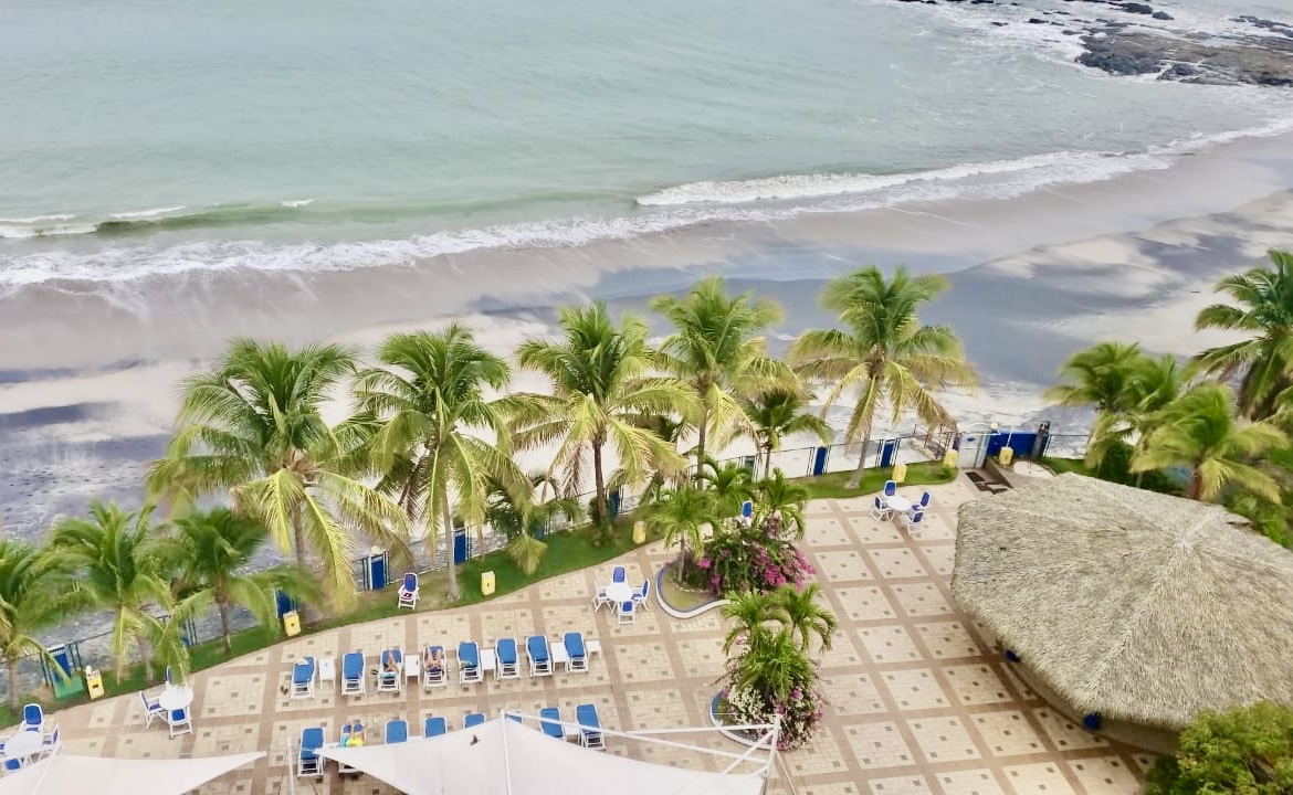Acogedor apartamento frente al mar, cuenta con sala comedor, cocina abierta con desayunador, balcón con vista lateral a la playa, lavandería interna, cuenta con 3 estacionamientos. Mantenimiento mensual: $190.00