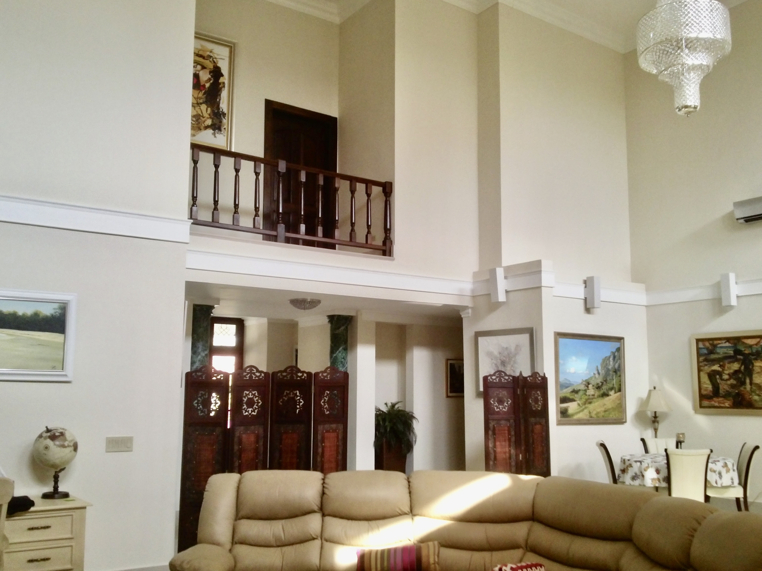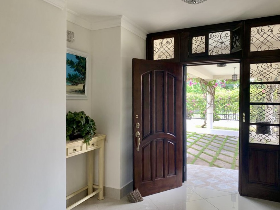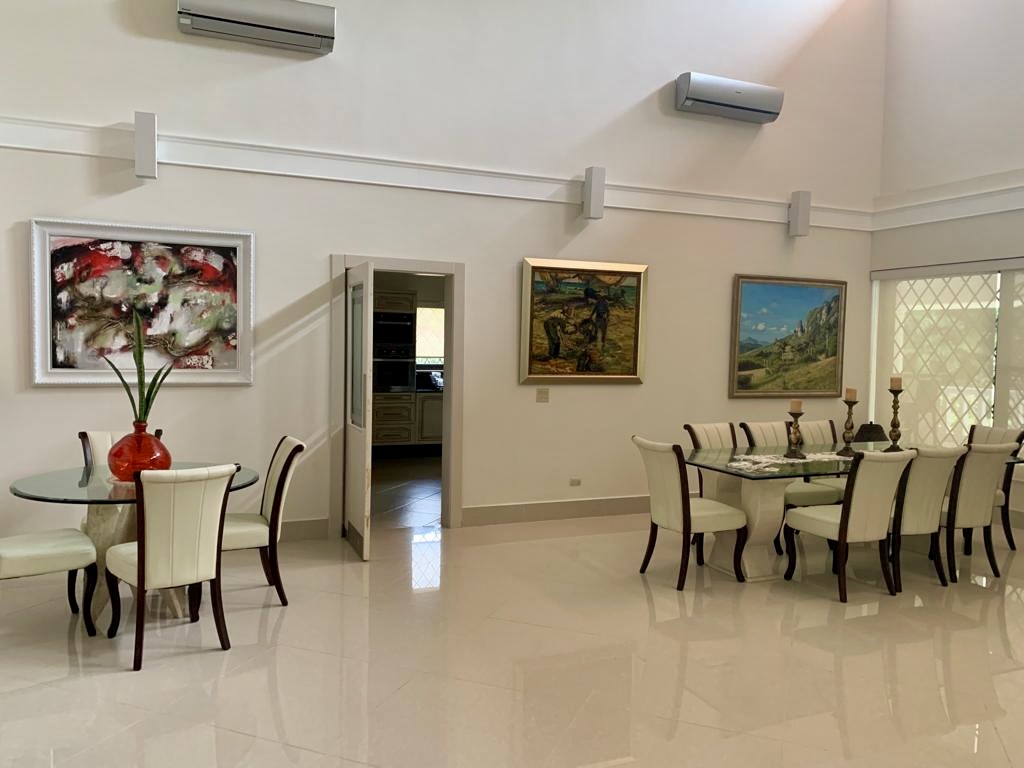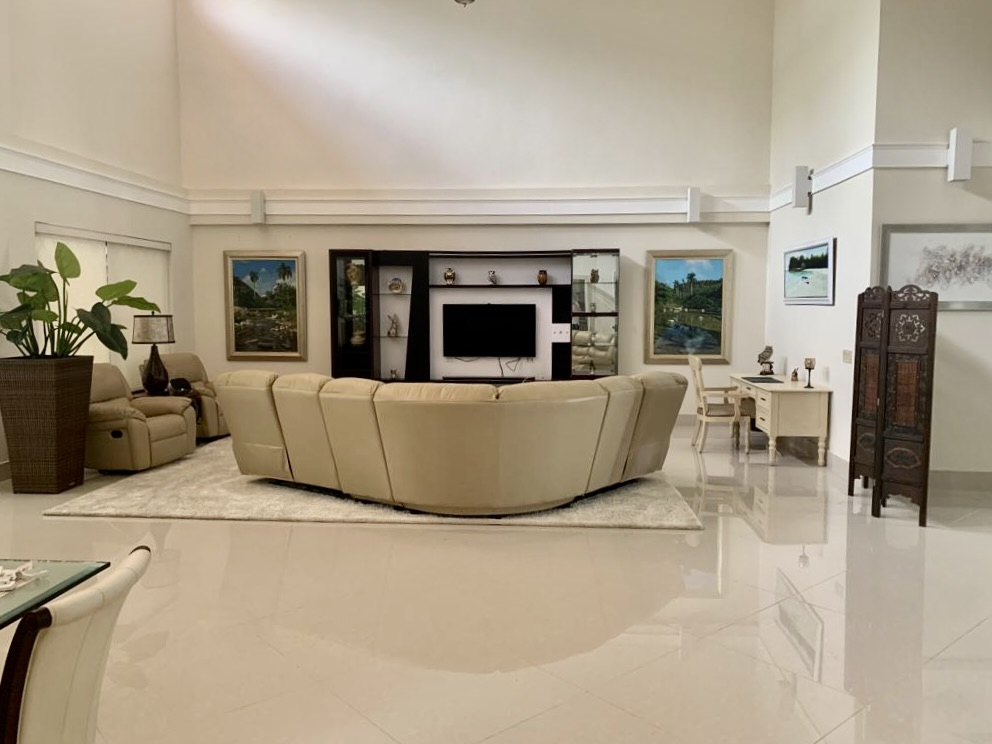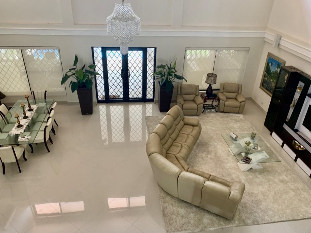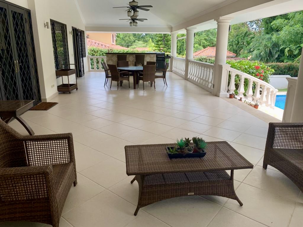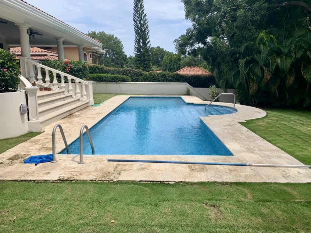 Venta de Casa en Coronado dentro de la parcela Golf y frente al campo de golf. Esta hermosa y elegante propiedad está ubicada en Calle Camino de Los Caballeros y muy cerca del club de playa de Coronado. Cuenta con 2 niveles y acabados de lujo. En el primer nivel con doble altura se encuentra la sala, comedor, cocina, c/b/e, lavandería interna, recámara principal con walk-in closet y opción para una segunda recámara, amplia terraza techada, piscina, depósito, cuarto de bombas, pozo, completamente cercada y con una hermosa vista al campo de golf.