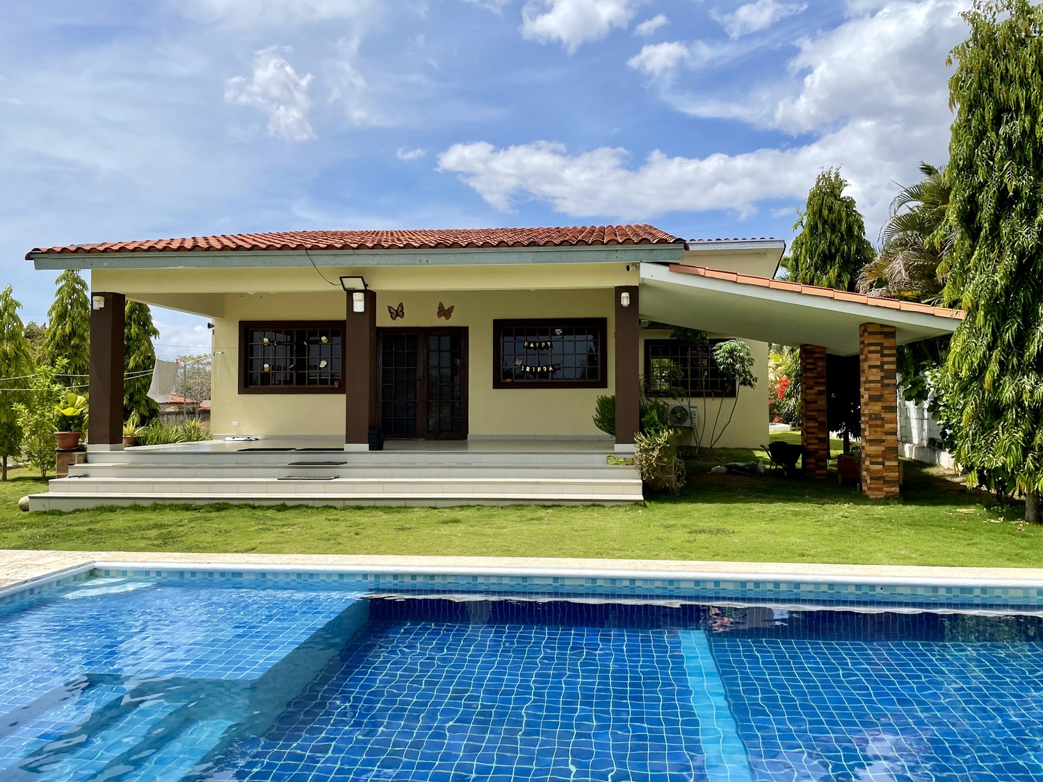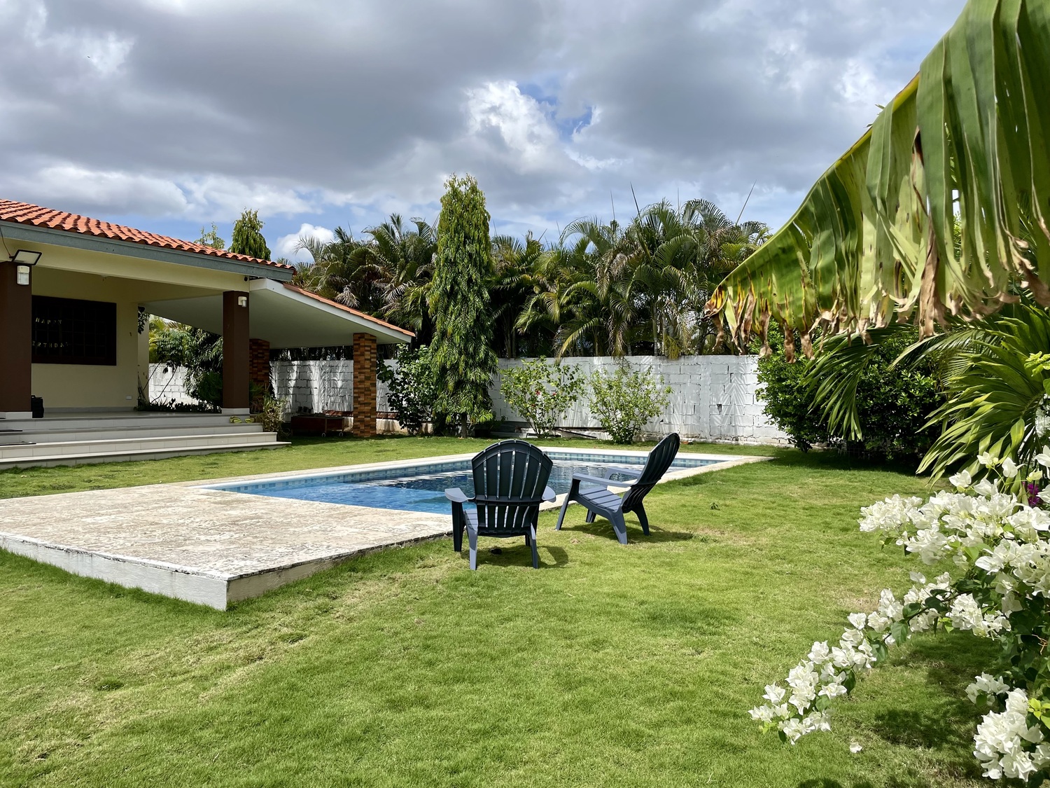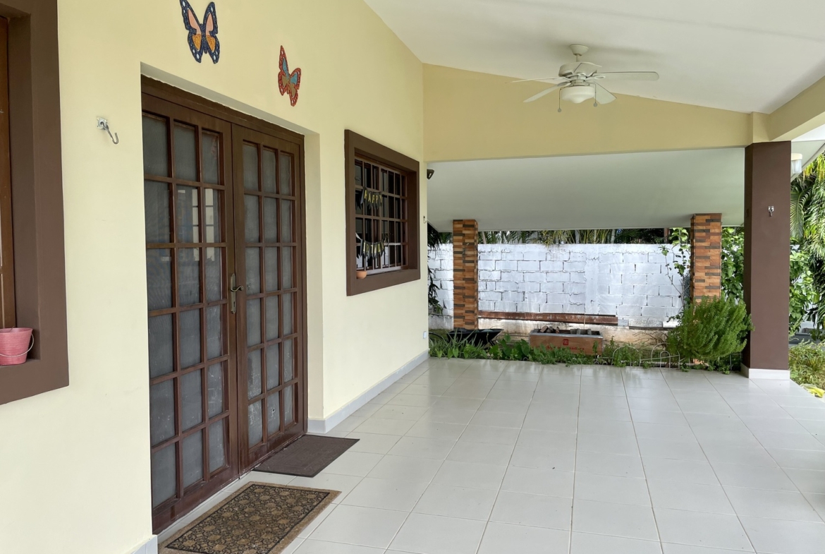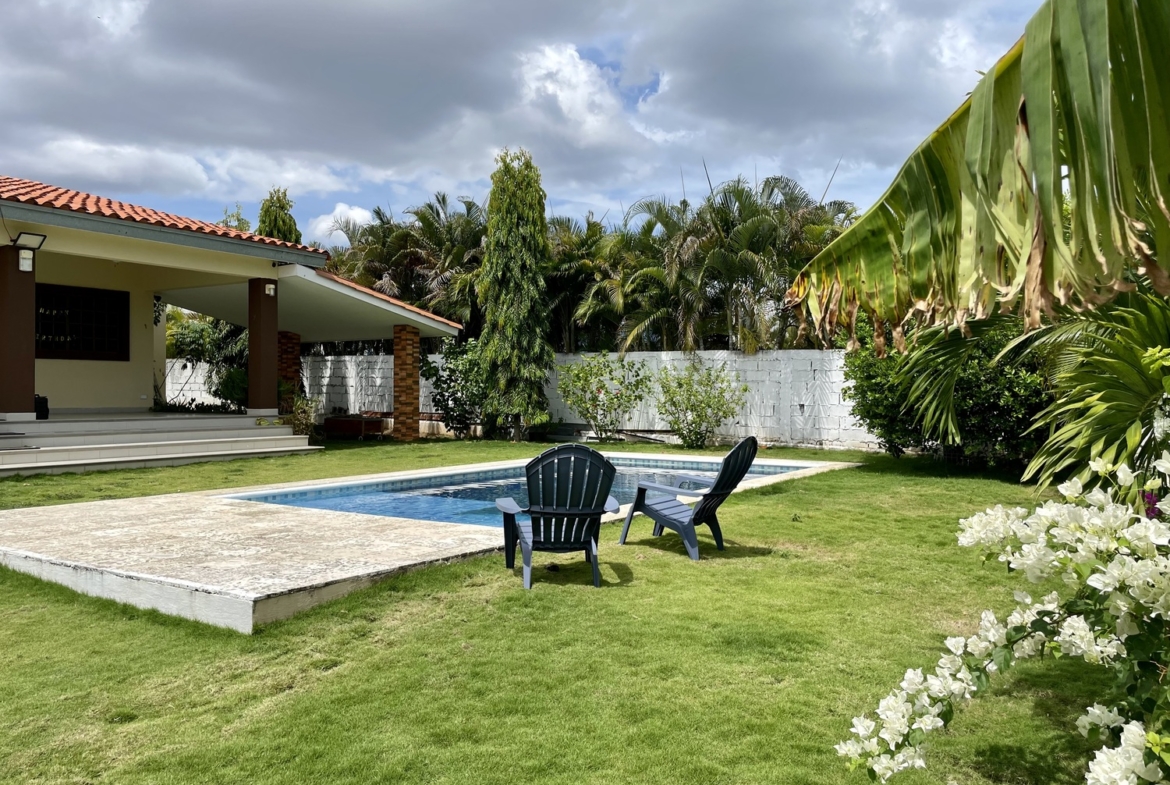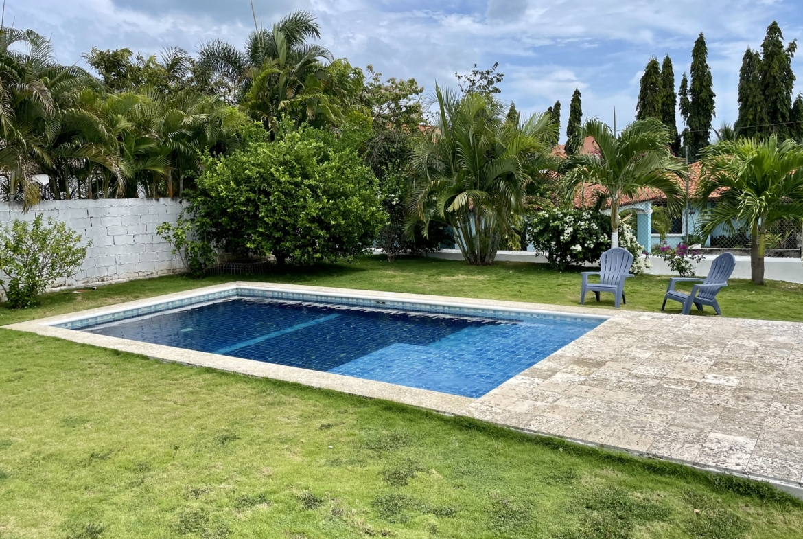 Terreno de 800m2Construcción 172.77m2 aprox.2 recámaras2 bañosSalaCocina abierta con desayunadorLavandería internaAmplia terrazaPiscinaDucha externa y cuarto de bomba de agua